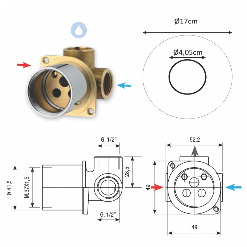 • Kit 1 salida Empotrado de Ducha Brazo